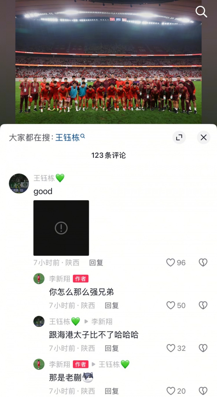 评论区王钰栋与李新翔进行互动: