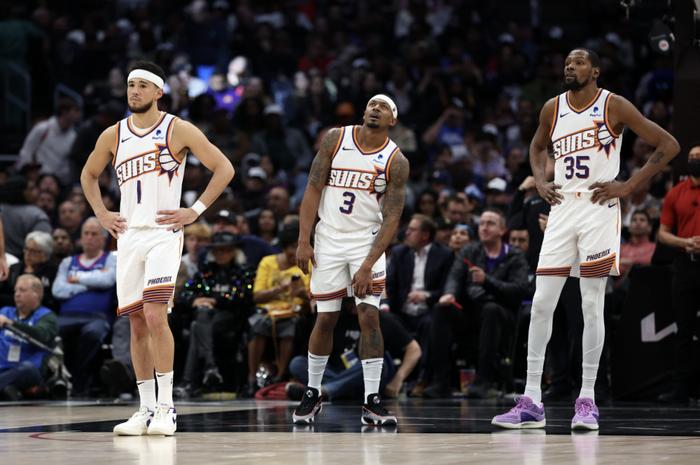 太阳在经历了一个失败的赛季以后,决心围绕着布克重建,他们首先将与火箭展开以杜兰特和杰伦-格林互换东家为主体的七方大交易,随后与球队另一位明星后卫比尔谈判买断,三巨头正式宣布在联手两年后解体。